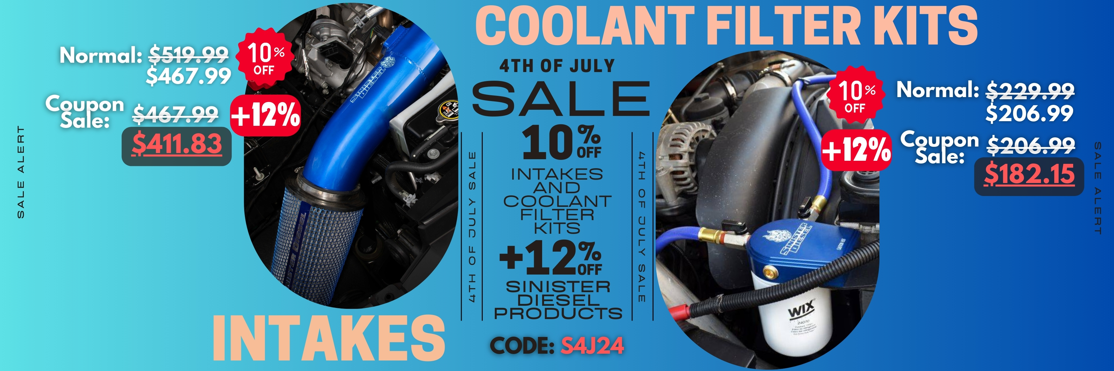 For a limited time we are offering 10% Off all Coolant Filter Kits and Cold Air Intakes which can be stacked with our 4th Of July 12% Off Sale. While Supplies Last: Combine our 50% Off Apparel Clear-out Discount with our 4th Of July Coupon for a total of up to 55% Off